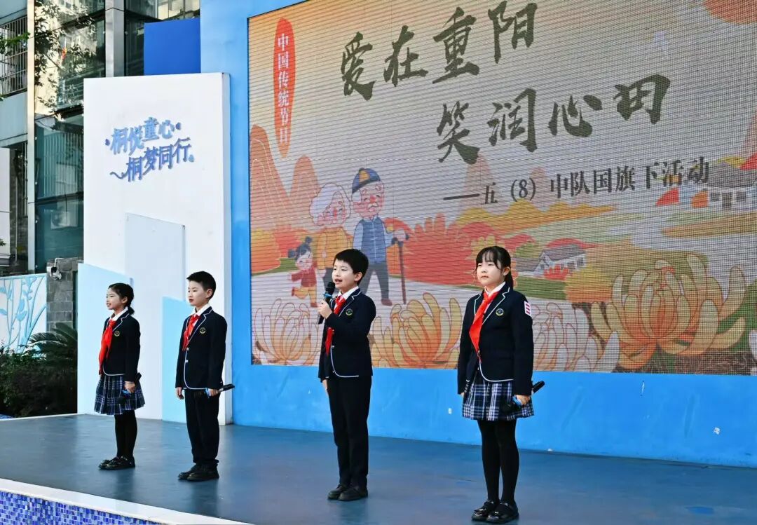 正值农历九月初九重阳佳节,成都市泡桐树小学南北区分别以“爱在重阳,孝润心田”和“重阳传家风,少年展风采”为主题,隆重举行国旗下主题活动。两场活动各具特色,情意交融,共同传承中华孝道文化,展现新时代少年风采。